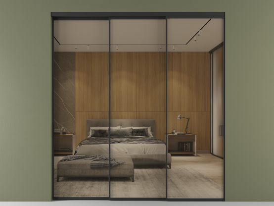 Во всех алюминиевых перегородках, независимо от типа установки, используется компланарный раздвижной механизм, благодаря которому декоративная крышка и полотно находятся в одной плоскости.